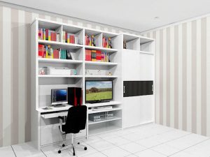 rak buku dan meja belajar